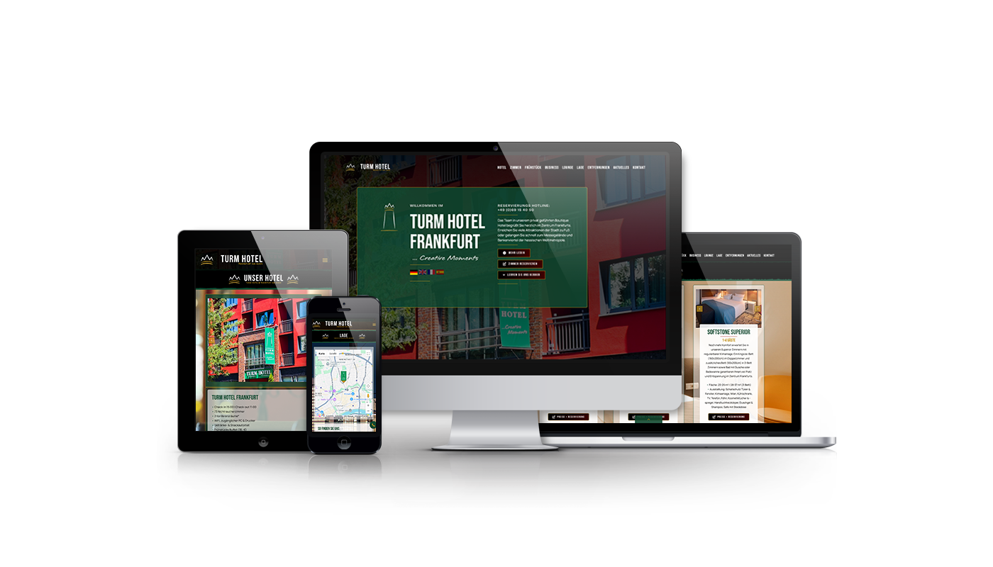 Multilingual fully responsive presentation of a popular downtown Frankfurt Hotel. One page layout featuring information about the hotel, rooms, amenities and property location. Different image galleries depending on viewport